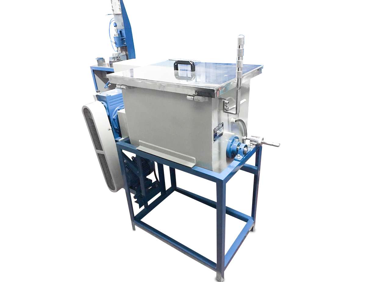 - Máquina fabricada em aço inox 304, estrutura em aço carbono, eixo central com pás tipo aletas invertidas, com capacidade de misturar até 25 kg de massa de sabonete.